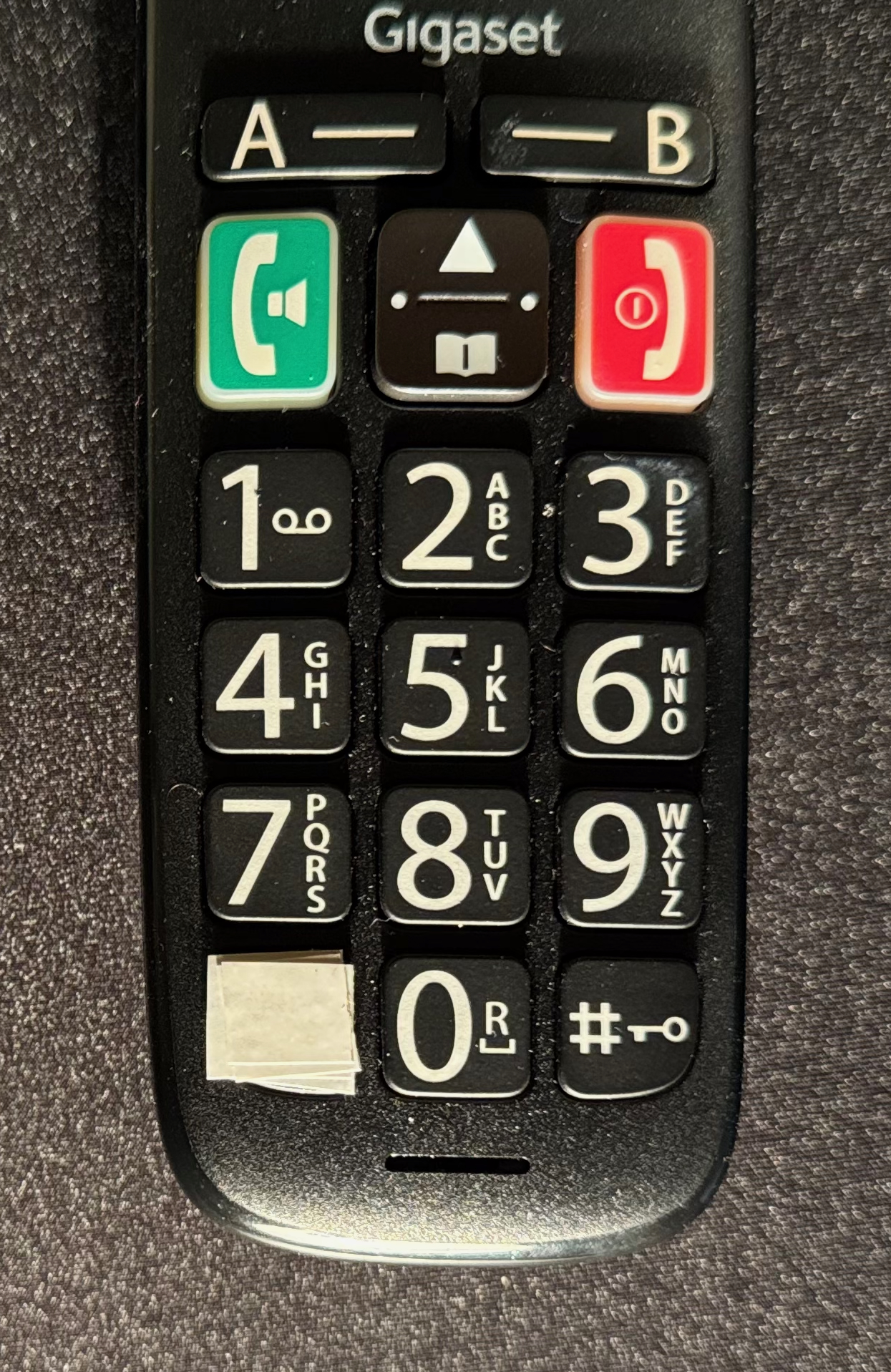 - Mobilteil > mehrere Lagen Klebeband über die Taste * kleben