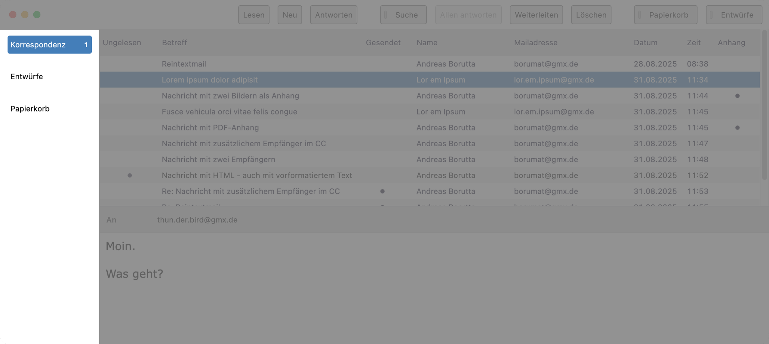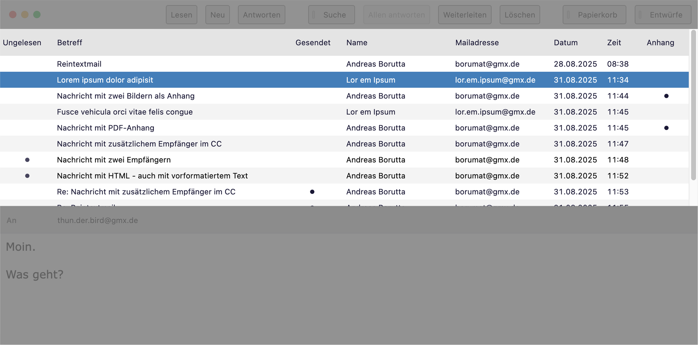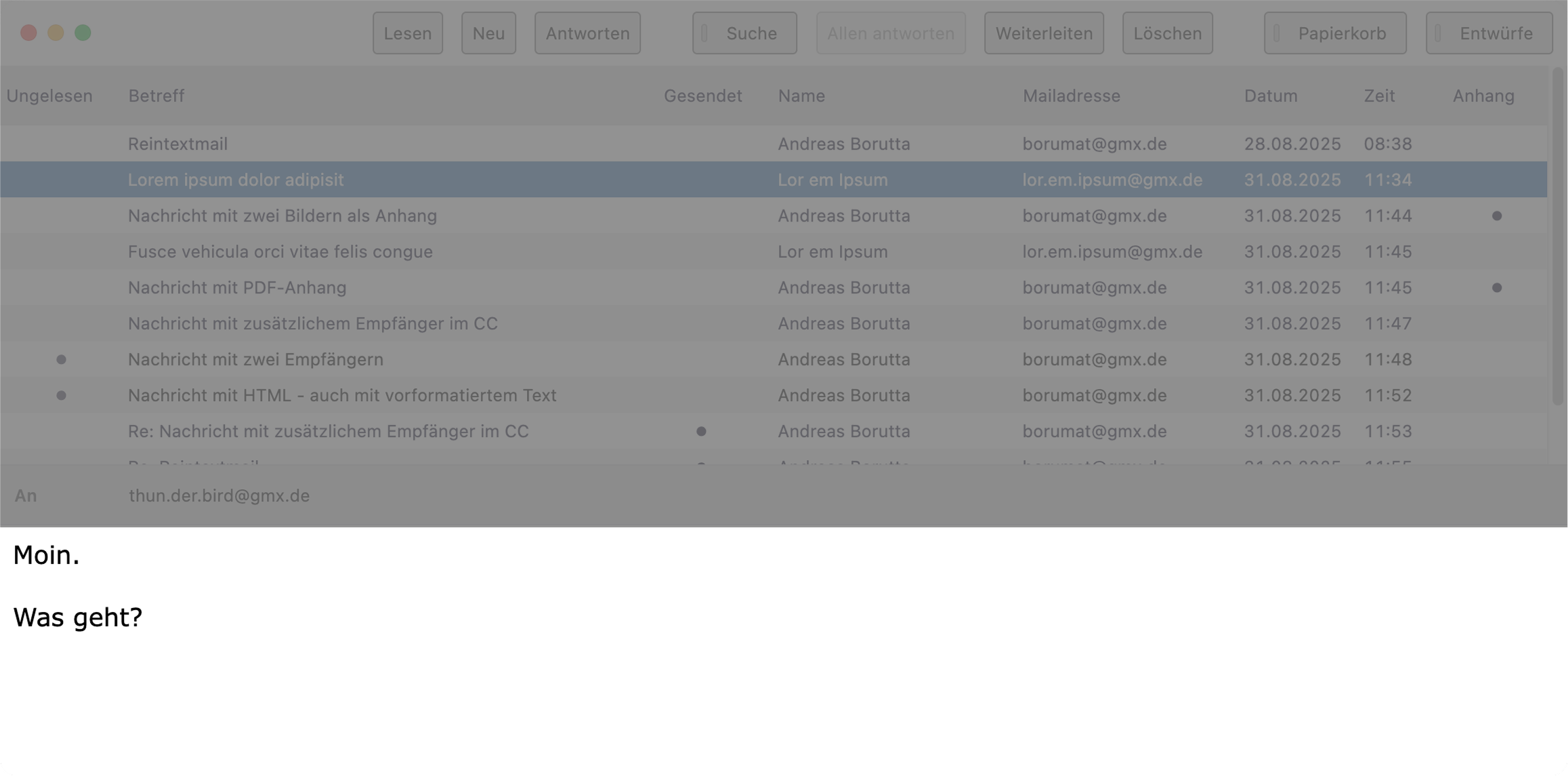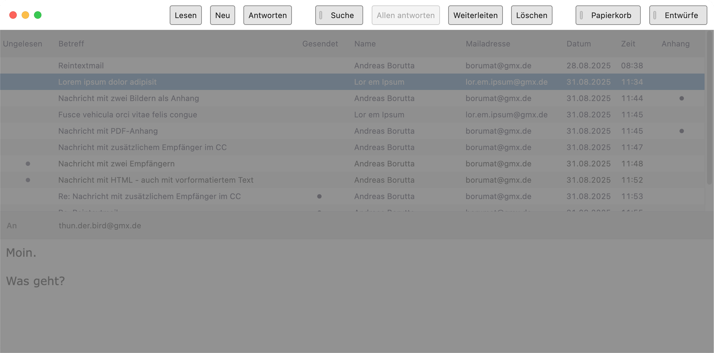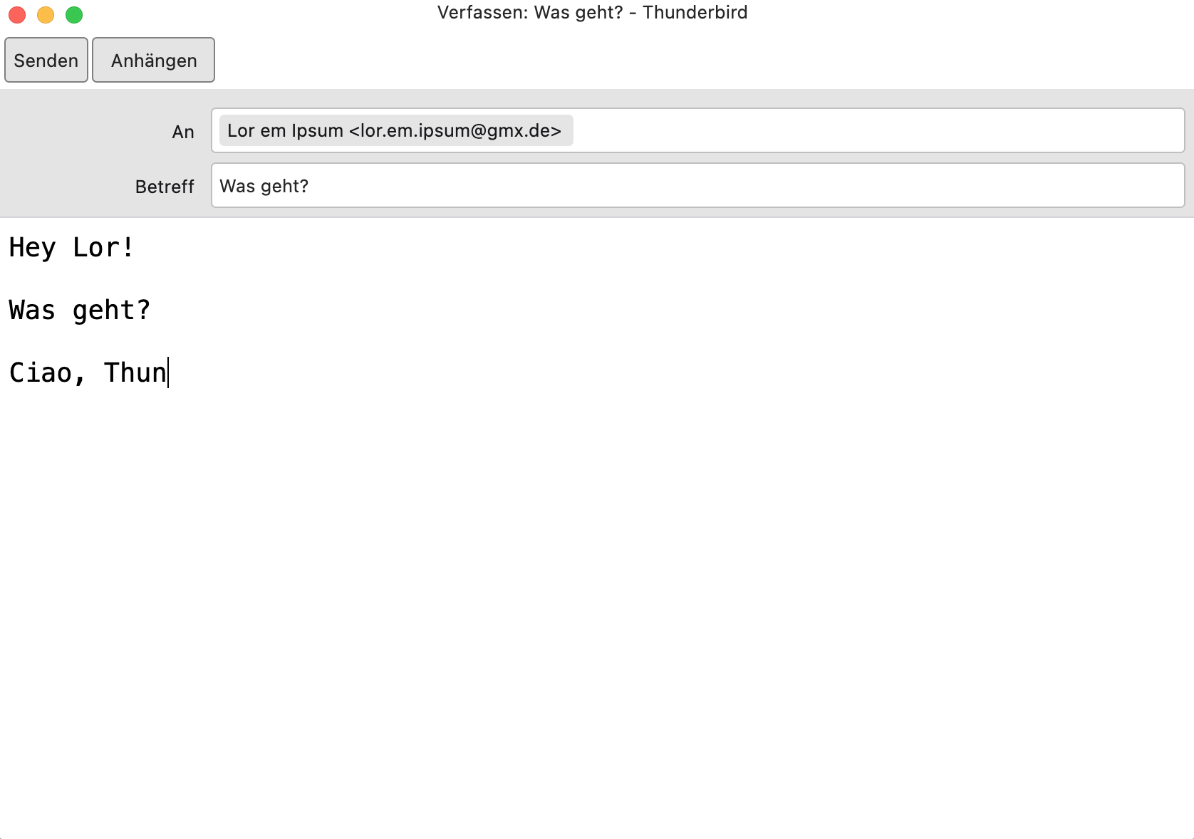 Zum Vergleich die Standardoberfläche von Thunderbird: